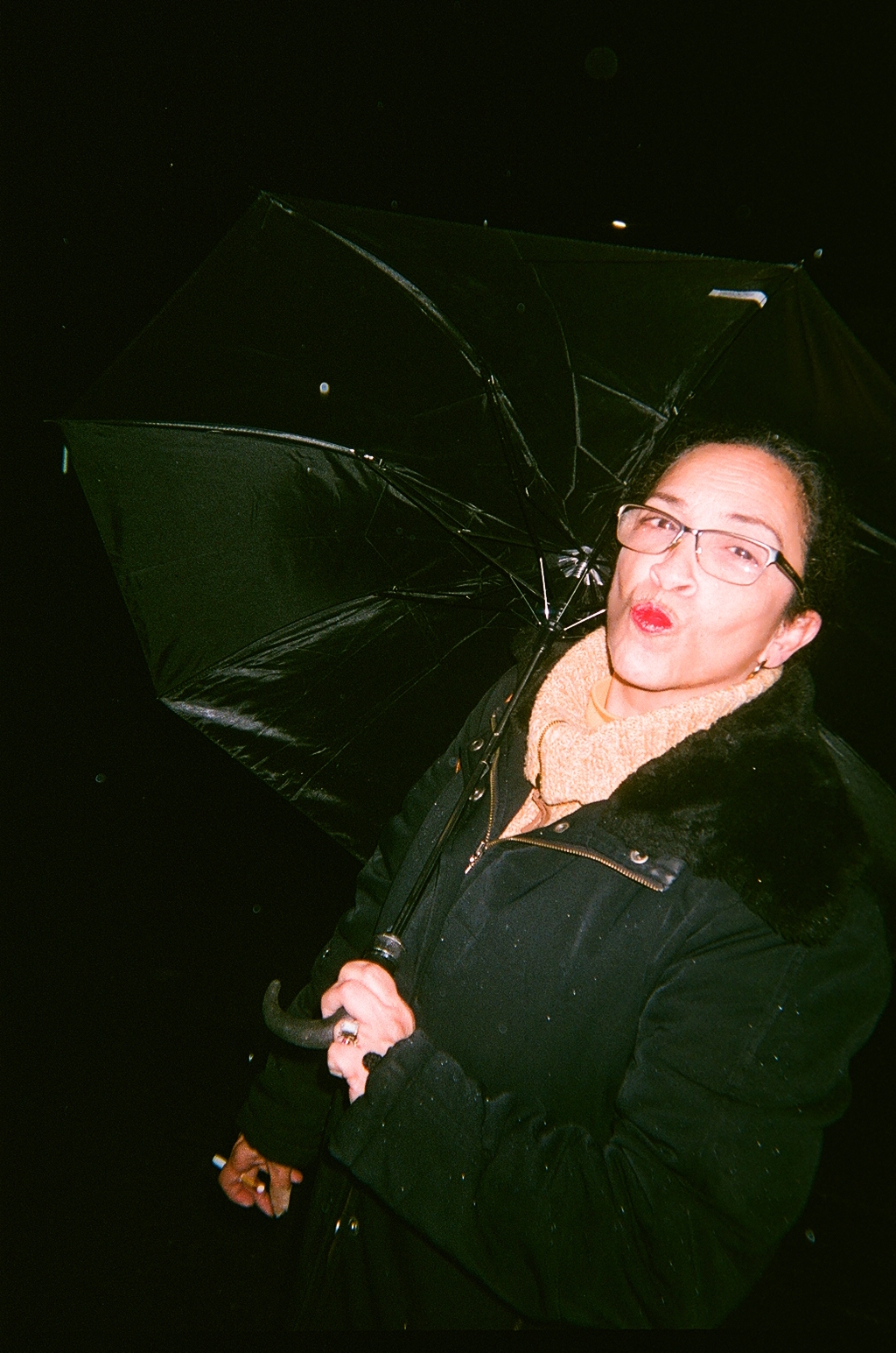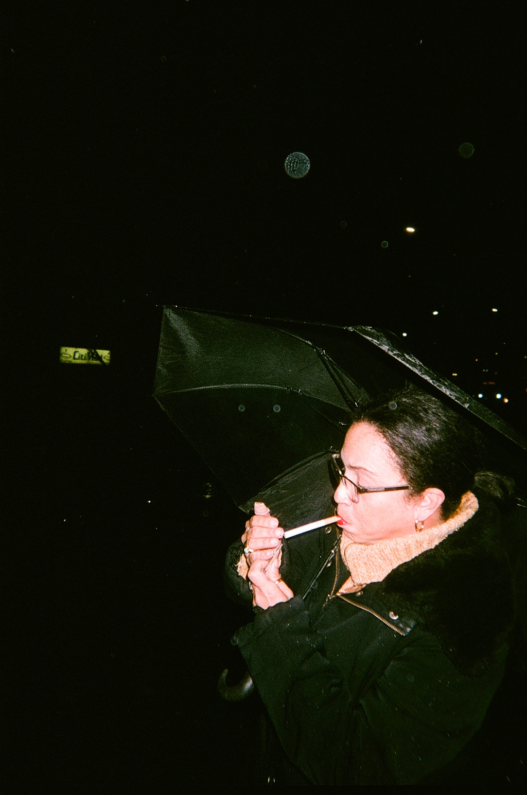We’re about to say goodbye when she mentions something about a cigarette and the universe supplying it. Not a second later, a man crosses the street and lights up. “Hey, can I get one of those?”